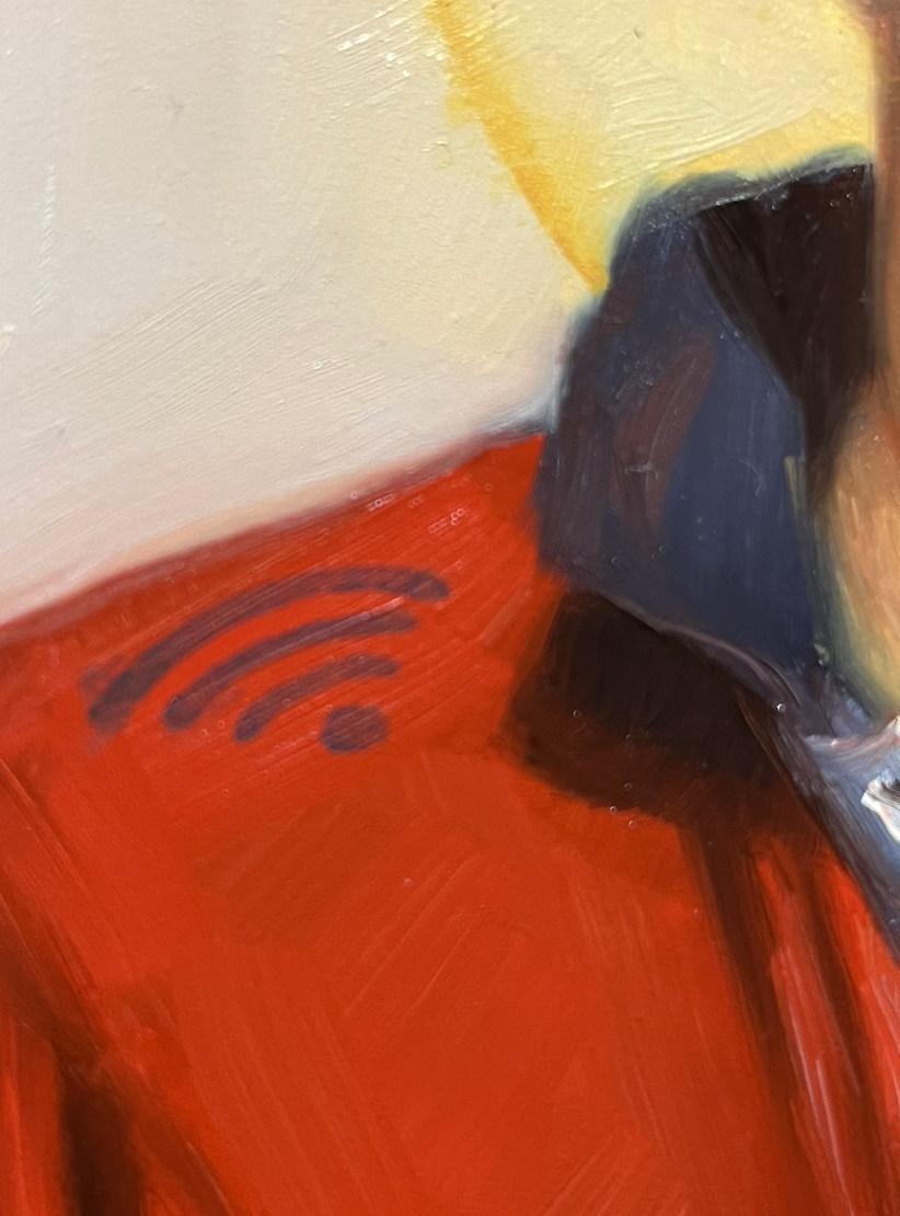 I painted the sports numbers “136” on his shirt because while living on earth Carlos documented 136 Eucharistic miracles - all recognized by the Catholic Church. Also, since he is the saint “connected” to the internet, I painted the Wi-Fi symbol on his shirt. And lastly, the halo around his head is of course symbolic of his status of sainthood recognized by the Church.